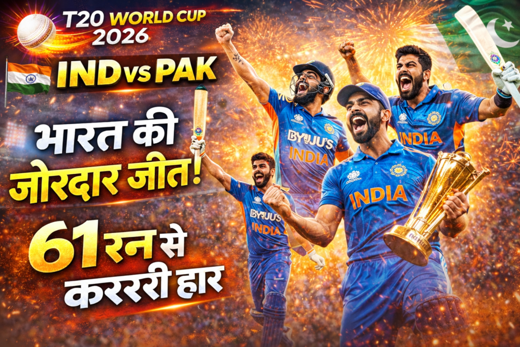 Bihar Times News । टी-20 विश्व कप 2026 में भारत ने पाकिस्तान को 61 रन से हराकर टूर्नामेंट में अपनी सबसे बड़ी जीत दर्ज की।