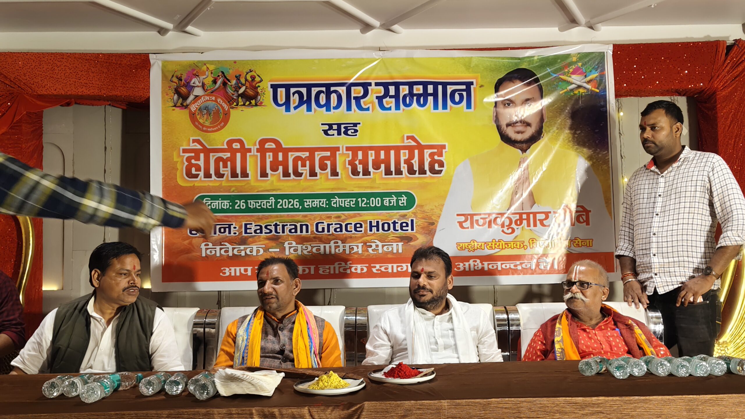 बक्सर। जिले में सामाजिक सौहार्द और संवाद को बढ़ावा देने के उद्देश्य से विश्वामित्र सेना द्वारा बुधवार को होली मिलन एवं पत्रकार सम्मान समारोह का आयोजन किया गया। कार्यक्रम शहर के Eastran Grace Hotel में आयोजित हुआ, जिसमें बड़ी संख्या में पत्रकारों एवं गणमान्य लोगों ने भाग लिया।